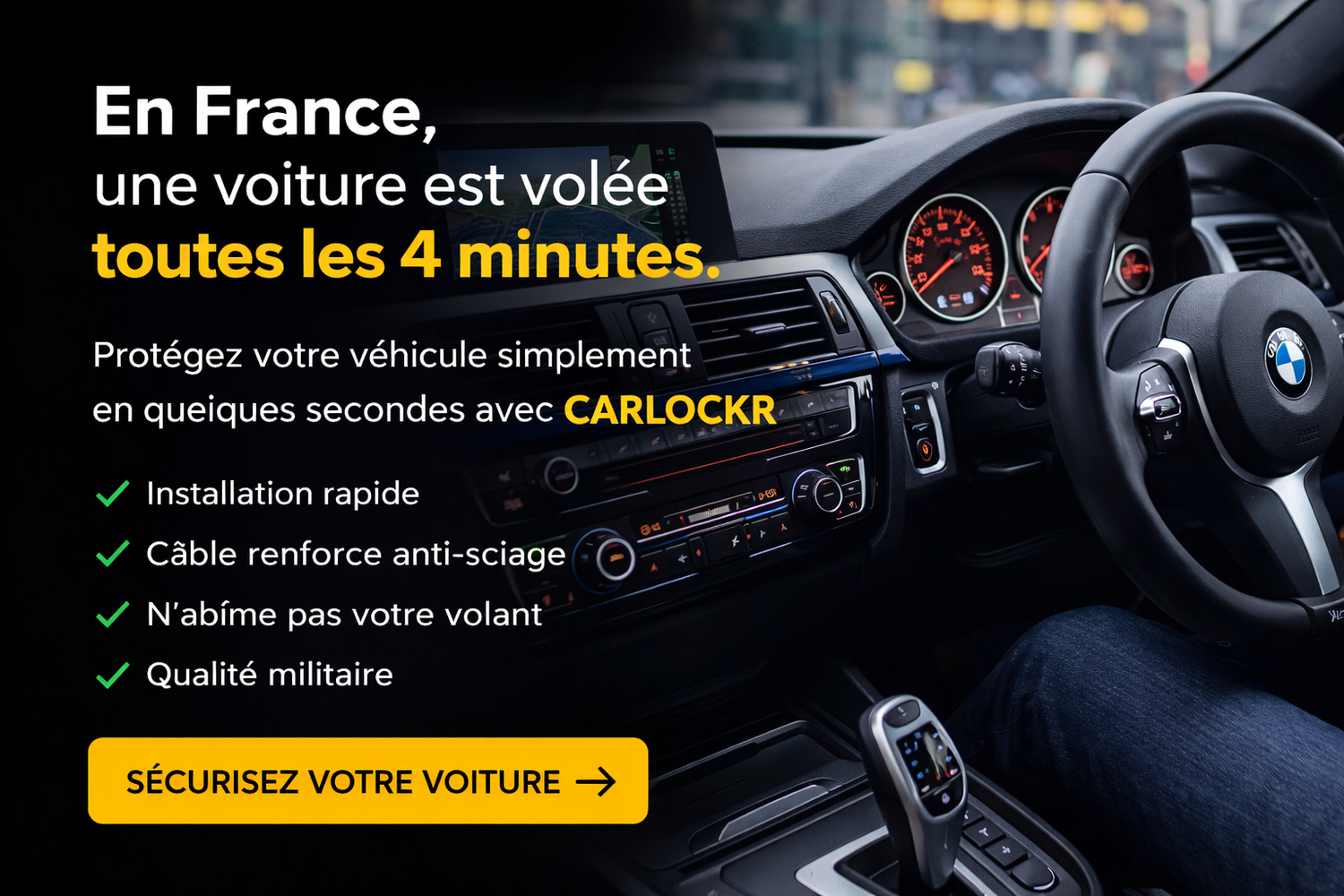 Avec CARLOCKR™, vous ajoutez une barrière physique visible qui dissuade immédiatement les voleurs.
